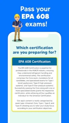 Pass your EPA 608 certification exams with ease! Take realistic practice exams and quizzes to boost your chances of passing the real exam on your first try. With 1,600+ questions written by experts, detailed explanations for each question, and hundreds of tests & quizzes at your fingertips, this is the only resource you need to prepare for your EPA 608 certification.