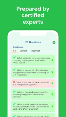 Our EPA 608 exam prep application is renowned for its focused and thorough content analysis, cutting-edge learning methods, and rigorous precision. We delve deep into every section of the latest exam, consistently refining our material to stay relevant. For both correct and incorrect answers, we offer in-depth explanations to reinforce comprehension of crucial exam concepts.