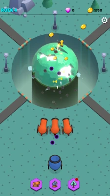 At the center of the game lies a huge, stylized stone waiting to be cracked. Tap the rock to deal damage, collect shiny gold coins, and use your earnings to unlock powerful cannons and mighty mortars. These weapons will keep firing automatically, letting you earn idle income even when you’re not tapping.