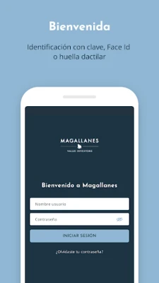 Identificación mediante la clave de acceso del área de cliente de Magallanes, Face ID o Touch ID, garantizando su seguridad.