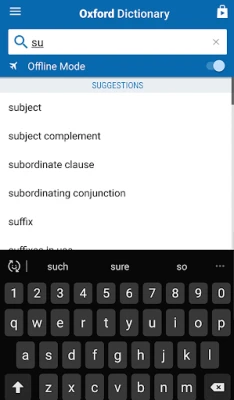 • Search autocomplete helps find words quickly by displaying predictions as you type