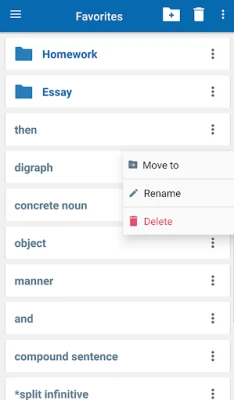 • ‘Favorites’ feature to create custom folders with lists of words from the extensive library