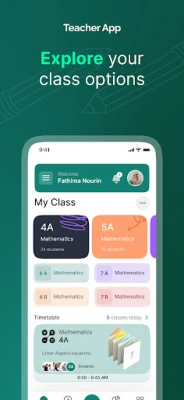Features: ● Class Management: Teachers can view their assigned classes and periods with ease. ● Attendance Tracking: Take daily attendance quickly and accurately from the app. ● Student Leave Management: Teachers can apply for student leave and approve leave requests seamlessly. ● Chat with Parents: Communicate with parents directly through the app to share study-related updates and important information. ● HOS/HOD can login to this app and view the follow up reports done by the class Teachers.