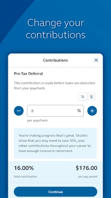 • Complete simple transactions and quick check-ins: view account balances, roll over funds, change contributions, adjust investments, and more