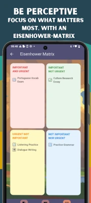 - Make confident decisions with an Eisenhower chart that highlights important tasks and urgent priorities.